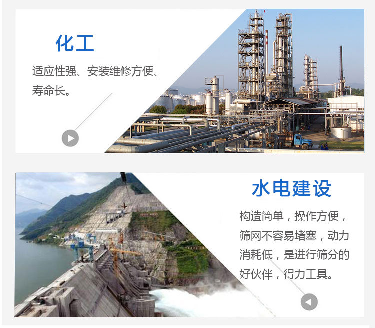 廣泛用于礦山碎石篩分、砂石骨料分級、化工粉末過濾等場景,可處理干濕物料。
